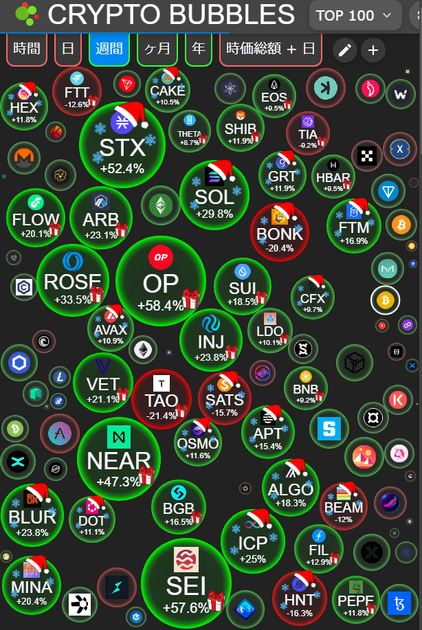 同時に、時価総額の低いコインの爆上げもあり、ピーク感も感じます。
