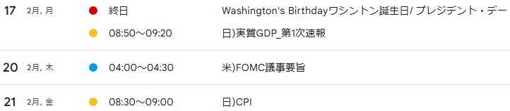・ほぼ全ての指数で米経済の強さを示している中で、小売売上高が2月14日の発表で急失速。「強い個人消費」が米経済を牽引していただけに、他指数でも弱くなってくる市場予想あり。